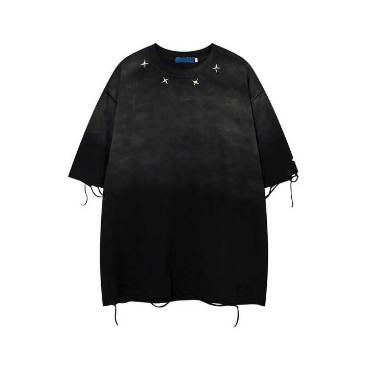 Trendy 100% Cotton Oversized Vintage Acid Washed Denim T-Shirts Distressed Cut Hem with Long Length Blank T-Shirts