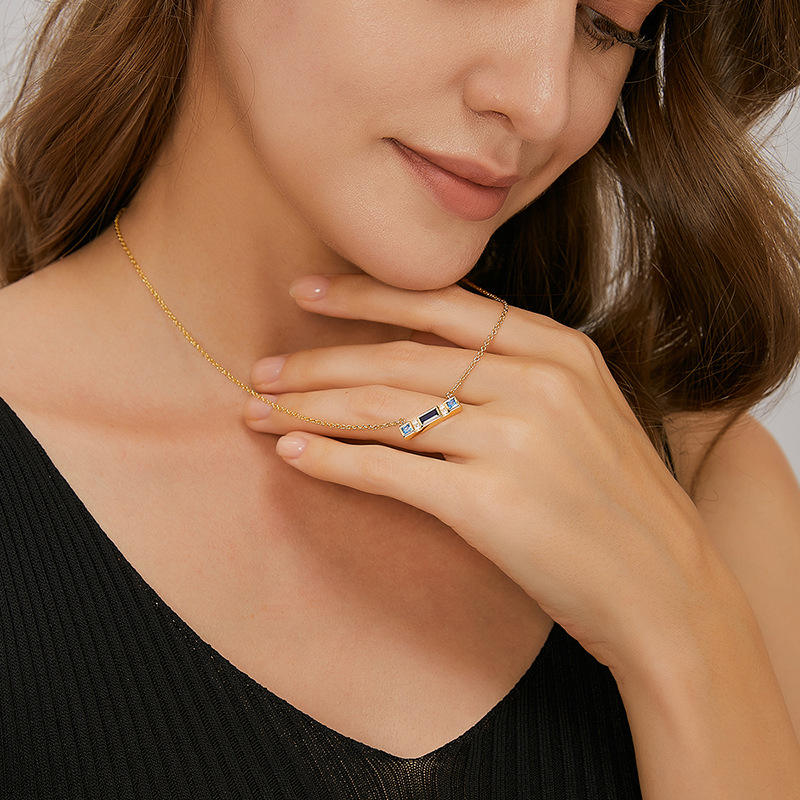 À la mode 14K Plaqué Or Lien Chaîne Baguette-Style Laiton Famille Pierre De Naissance Collier Motif Géométrique Zircon Griffe Réglage Femmes