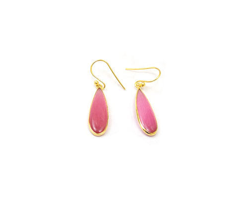 Trendy 14mm Gold-Plated Copper Hoop Earrings with Monalisa Gemstone Fashionable Pink Drop Shape Jewelry Findings Components