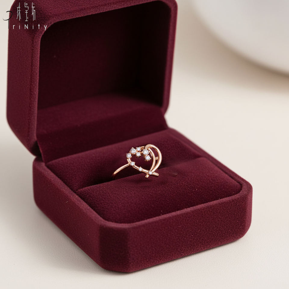 High Quality Wholesale Hand Crafted Trendy 18K Solid Rose Gold Fancy Heart Design Ring Natural Diamond Stackable Ring Jewelry