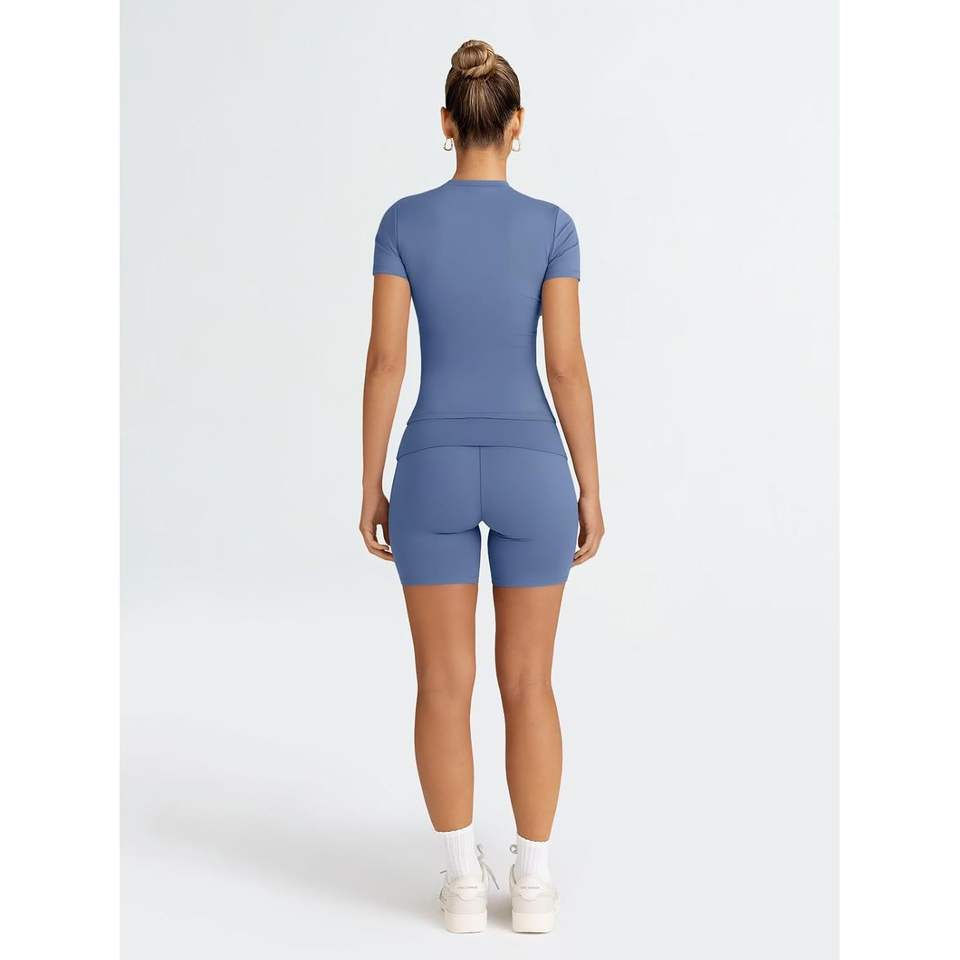 Ensembles d'entraînement et de salon 2 pièces à la mode pour femmes taille bleue S-XL motif imprimé pour les tenues de gymnastique d'été ou les sorties