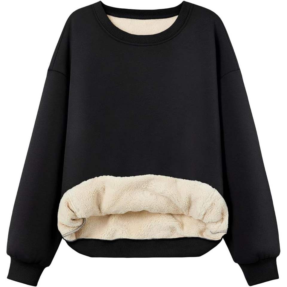 Trendy 2025 Women's Winter Fleece Sweatshirts Sherpa Lined Crewneck Long Sleeve Pullover Hoodies Outfits Clothes in XS Size