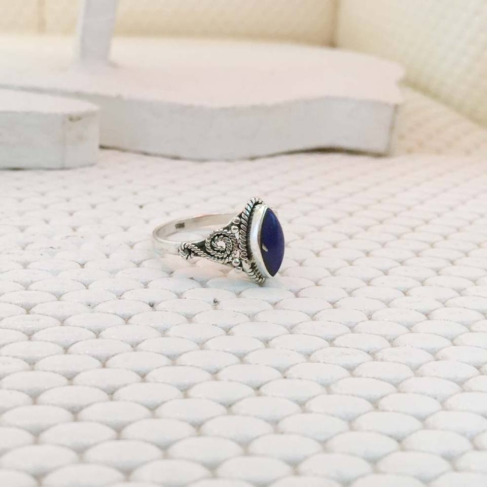À la mode 925 en argent Sterling lunette réglage bleu Lapis Lazuli pierre précieuse mignon Style ethnique unisexe bague meilleure qualité pour les mariages