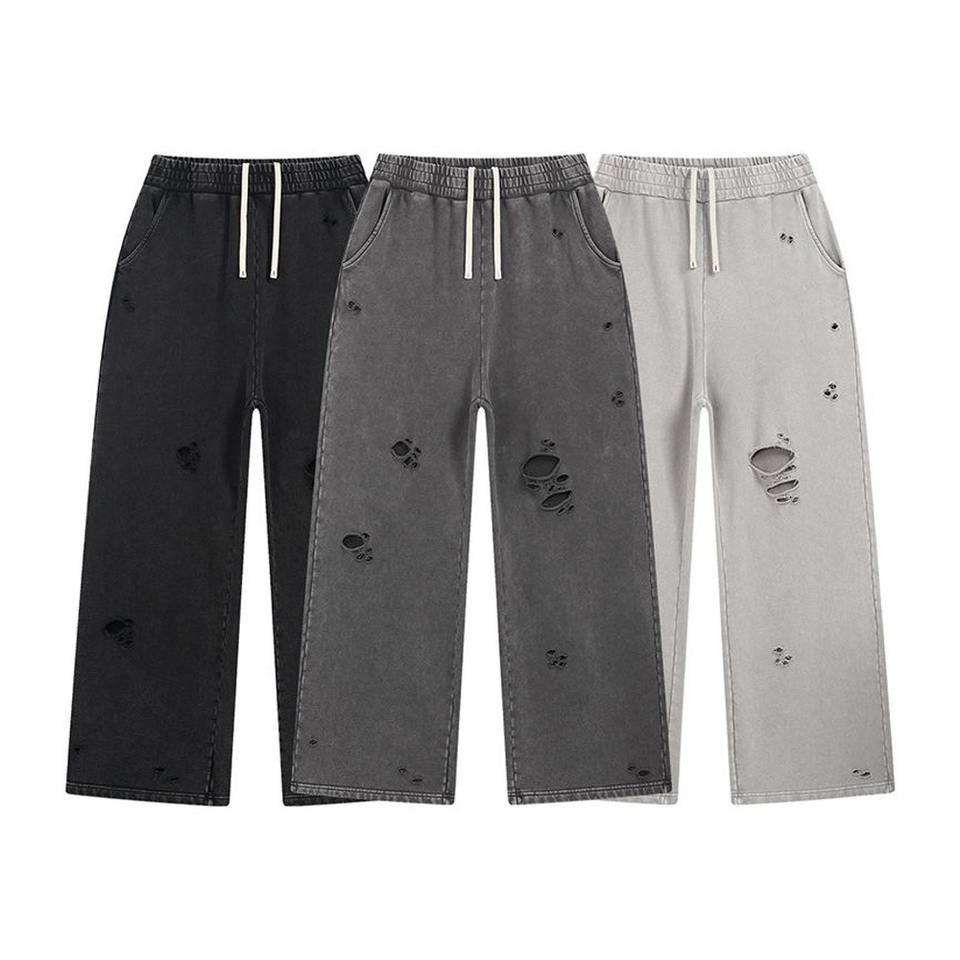 Pantalons de survêtement à jambes larges tendance, lavés à l'acide, logo personnalisé, taille élastique, pantalon en molleton français, style streetwear, 100% coton pour hommes