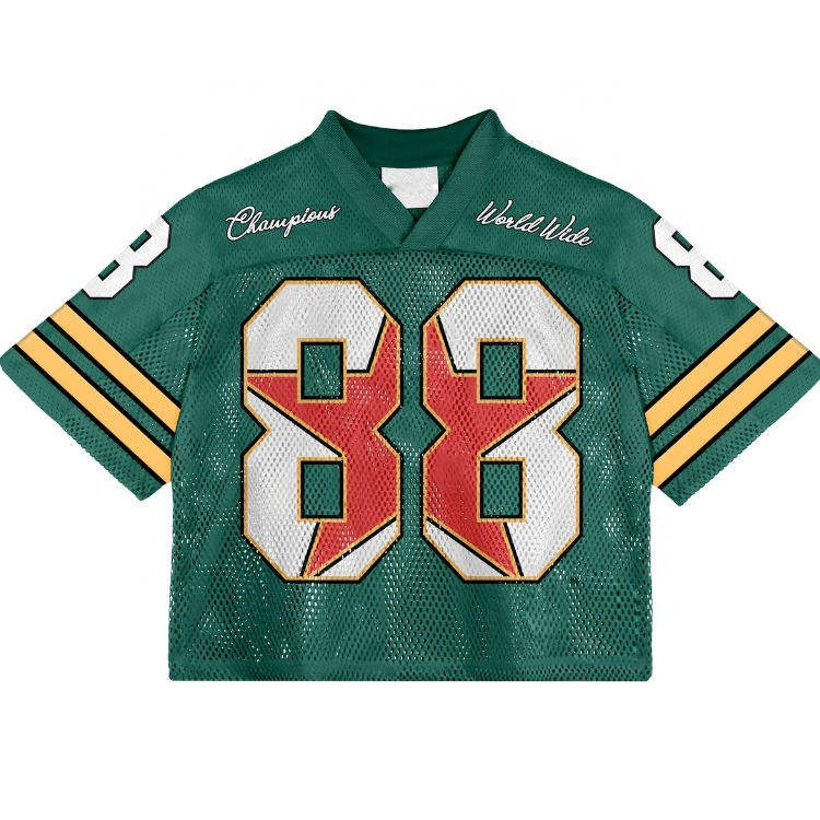 Maillot de Football américain à la mode personnalisé impression sublimée broderie conception solide maille culture courte Streetwear équipe nationale