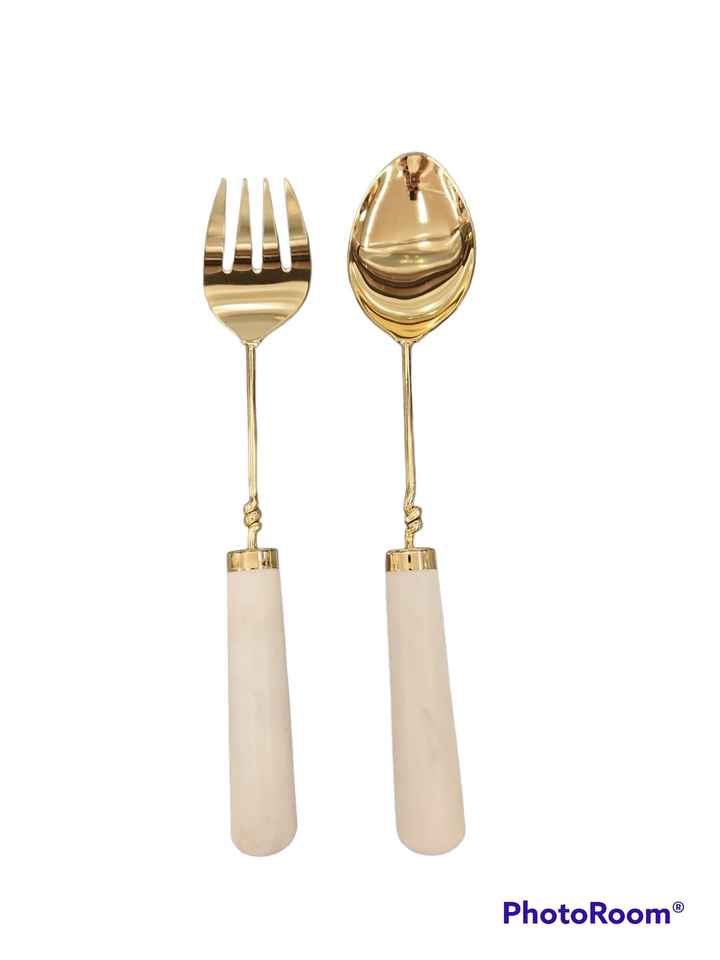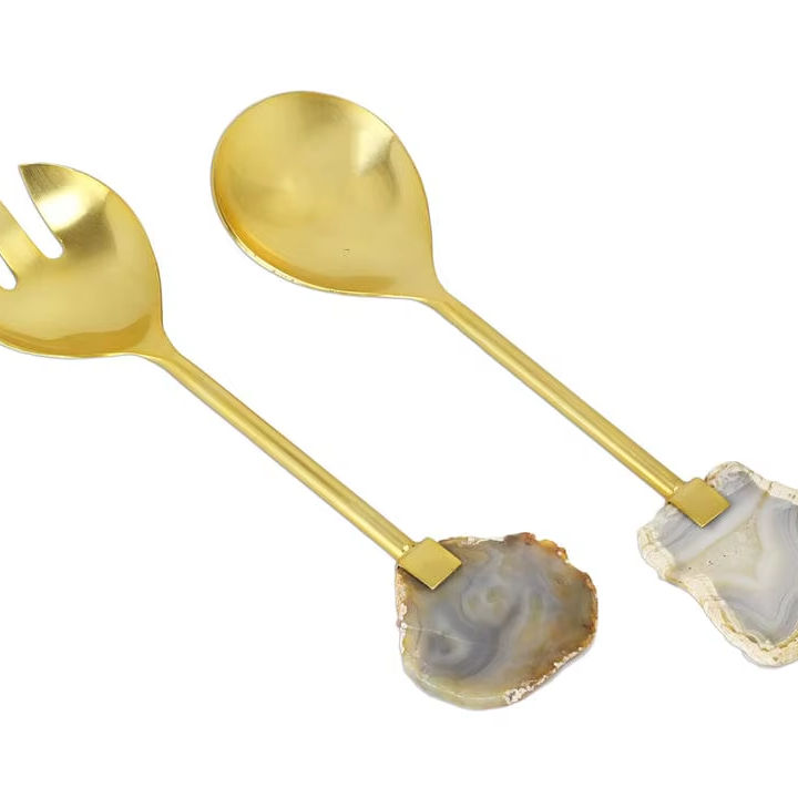 Poignée en agate de style américain à la mode en acier inoxydable plaqué or ensemble de couverts de service à salade durable et durable art indien