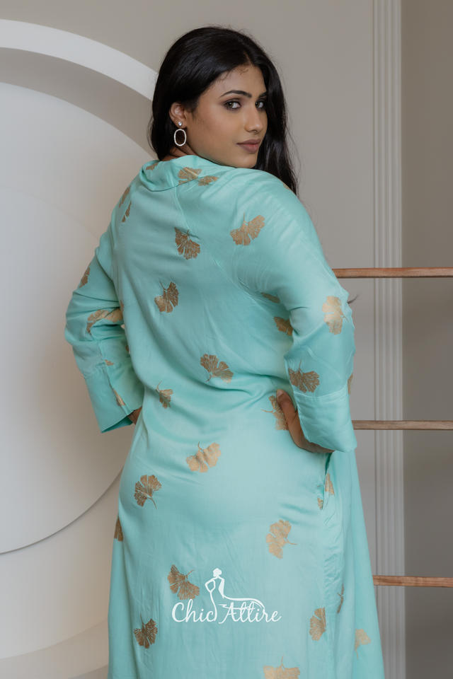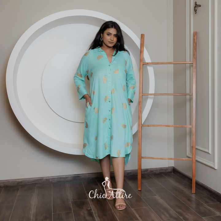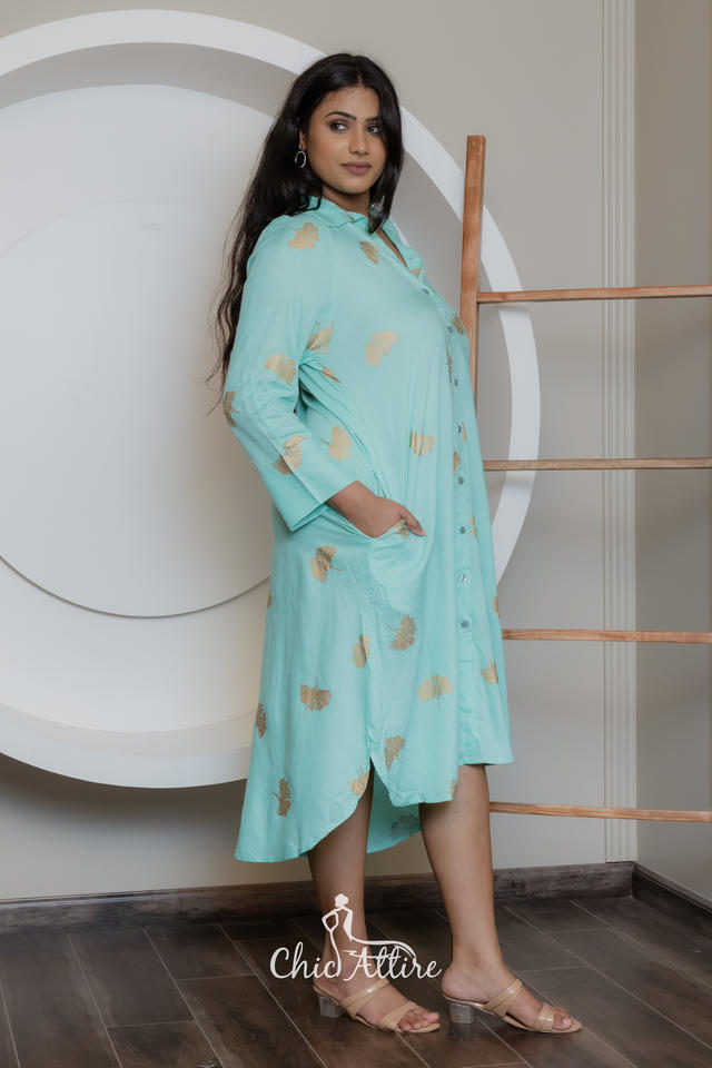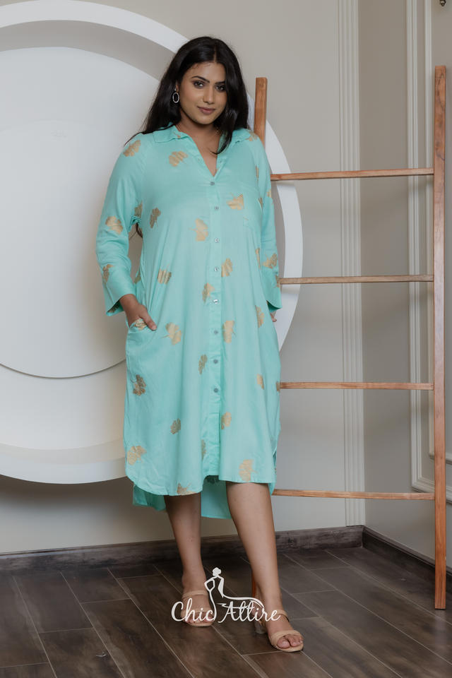 Product Name:Gold Foil Printed Long Shirt Dress for Women