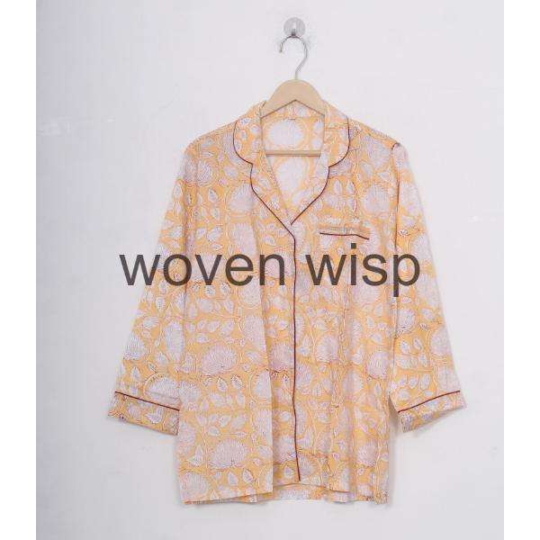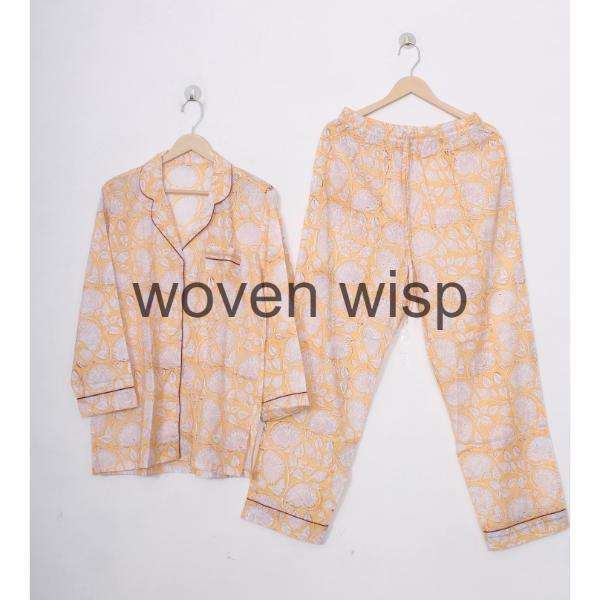Ensemble pyjama à carreaux Boho à la mode Vêtements de nuit en coton doux avec tissu tissé imprimé à la main pour l'hiver-Options de commande en gros