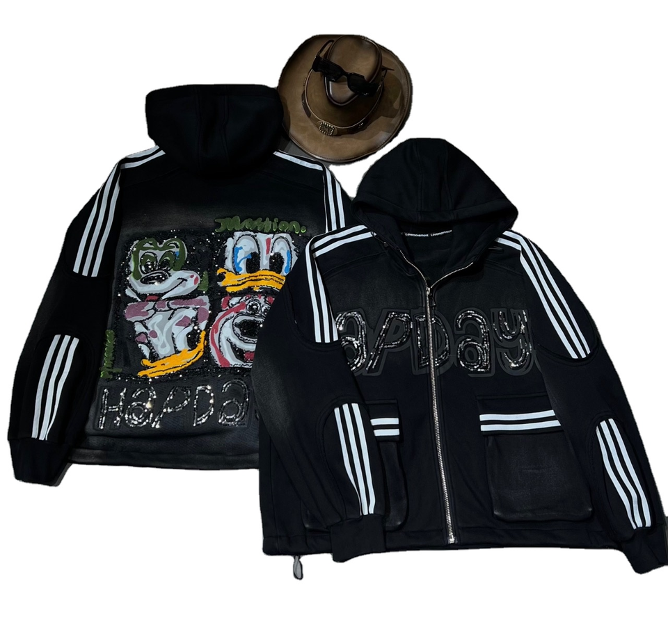 Trendy Brand Men's Applique Winter Digital Printed Hooded Jacket Fleece Cotton & Polyester Oversized Hoodies Sweatshirts