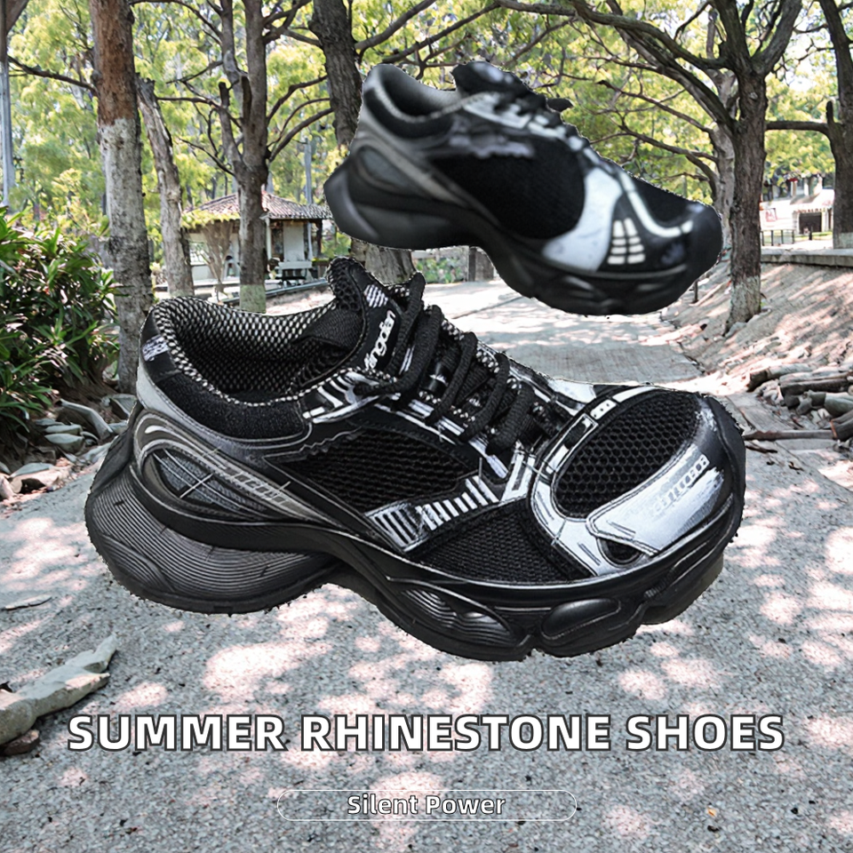 Chaussures de sport tendance respirantes avec strass estampés à chaud, semelle épaisse, fermeture à lacets, couleur unie, semelle intérieure en EVA pour l'été