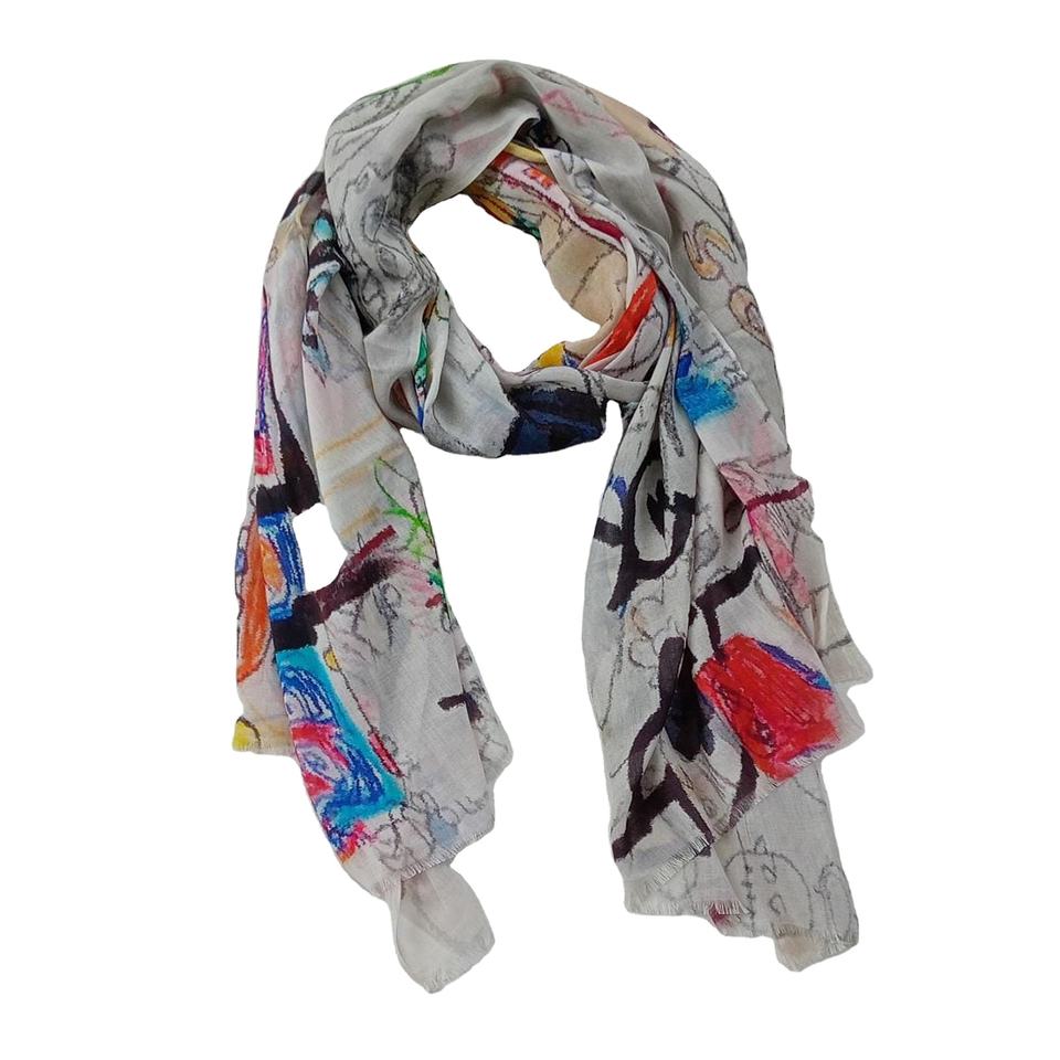 Tendance 100% Modal Écharpe Élégant Dessin Animé Numérique Imprimé Conception Texture Douce Emballage Personnalisé avec Logo Prix Bas