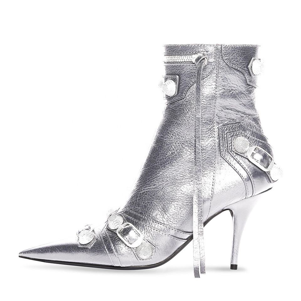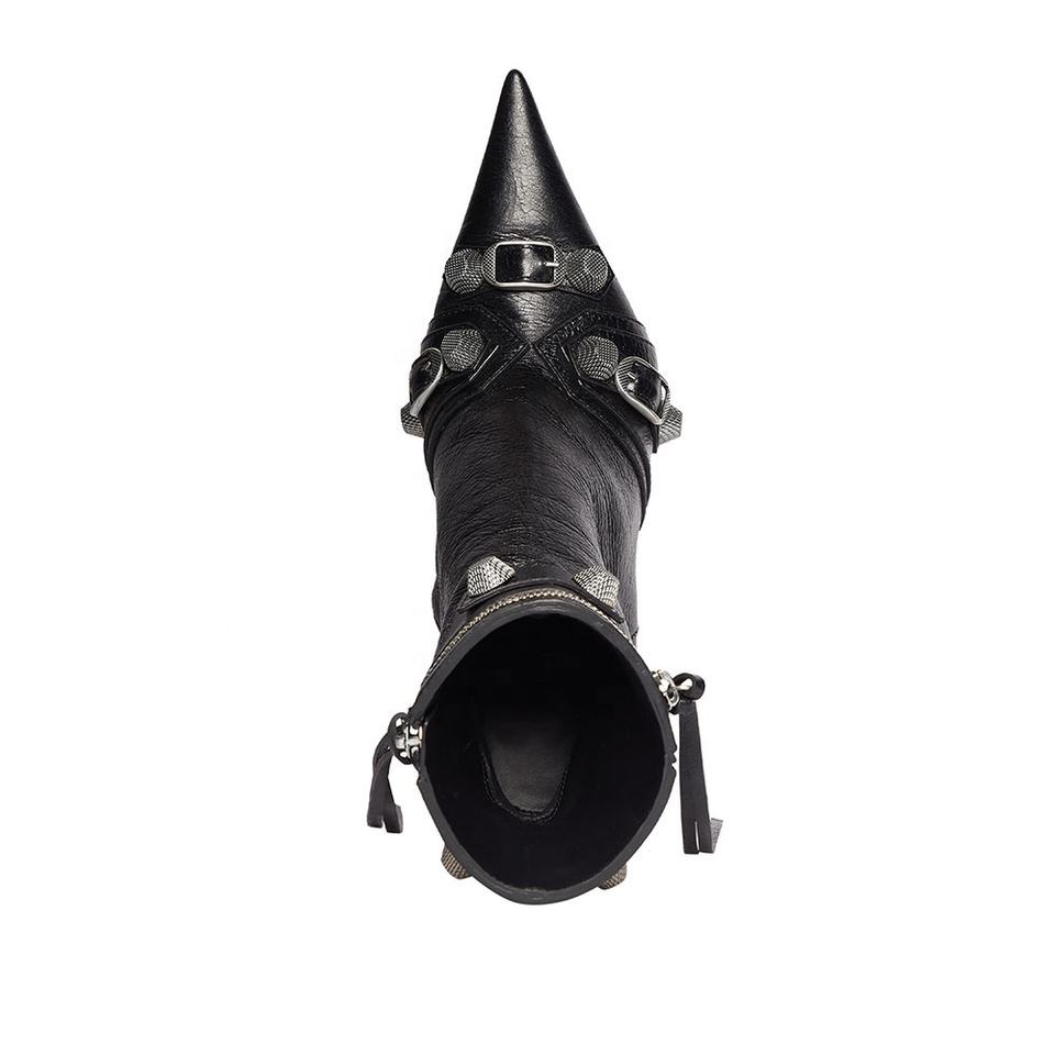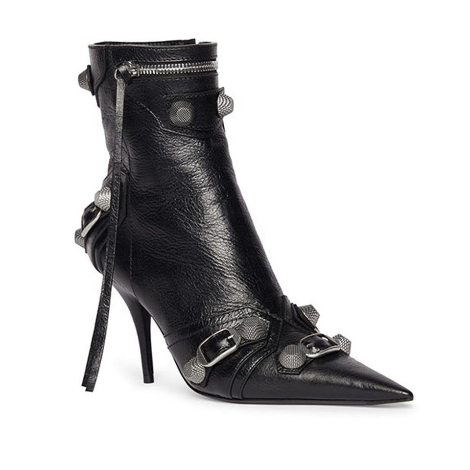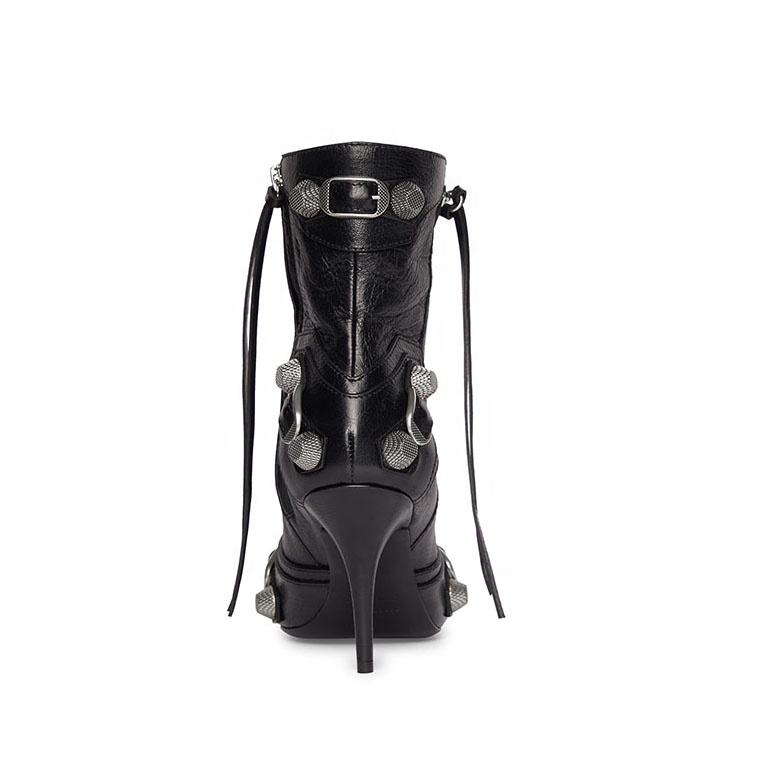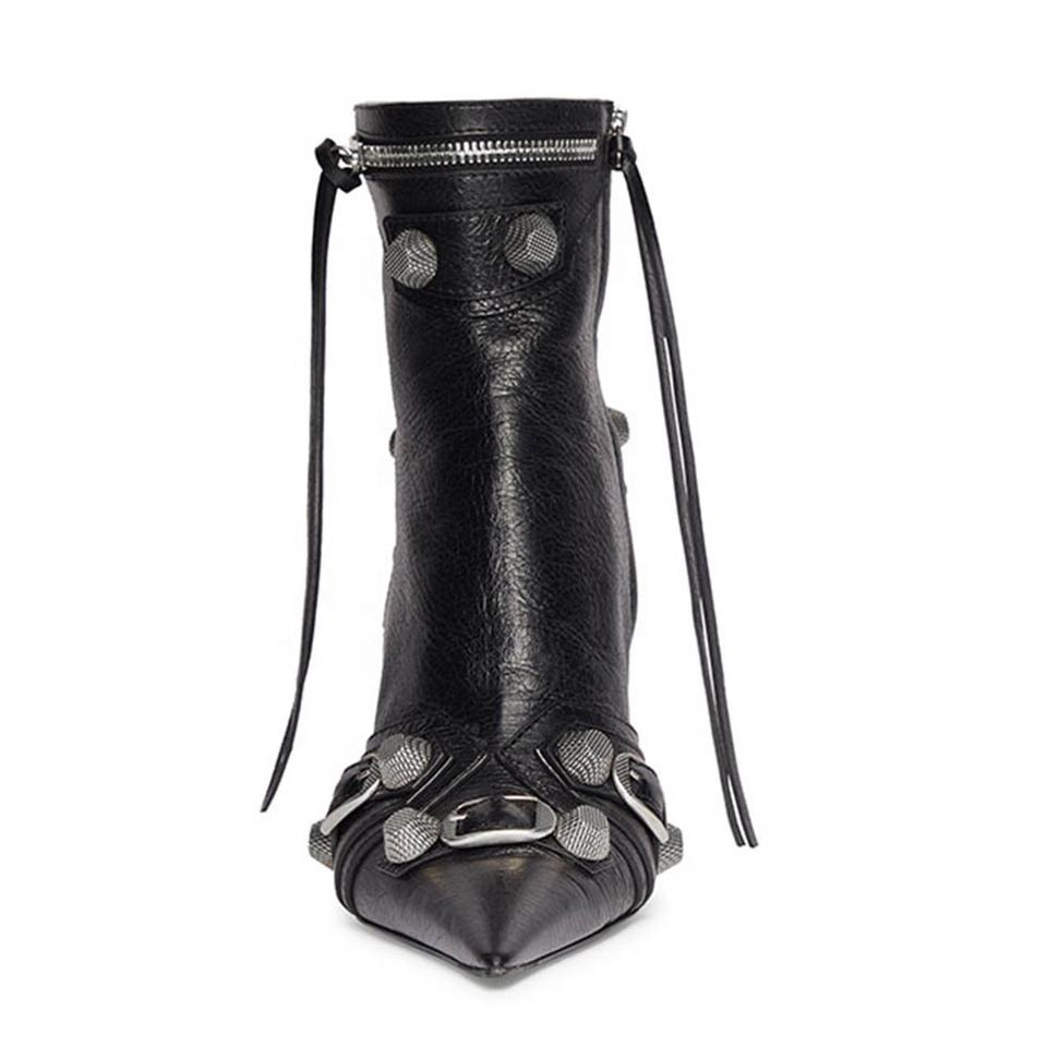 Bottines Chic à bout pointu et rivets noirs pour femmes, bottines cloutées à la cheville, nouvelle collection