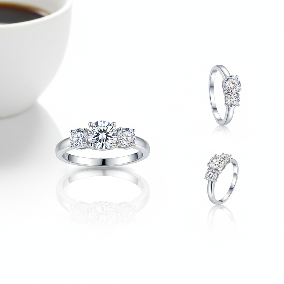 Bague Tendance Classique Personnalisée en Argent 925 Plaqué Rhodium avec Trois Diamants Moissanite Givrés – Cadeau Idéal pour Fiançailles, Mariage, Anniversaire, Fête, Promesse