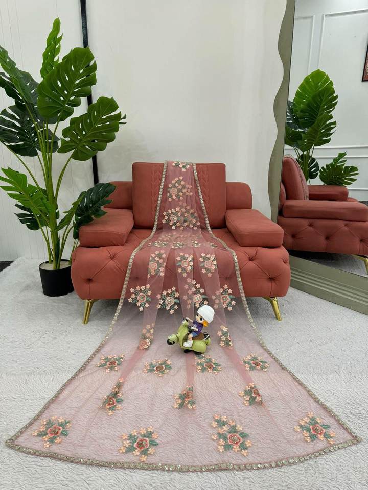 Trendy Classic Heavy Soft Net Fabric Light Pink Color Beautiful Weaving Long Length Designer Saree With Blouse Piece With Stole