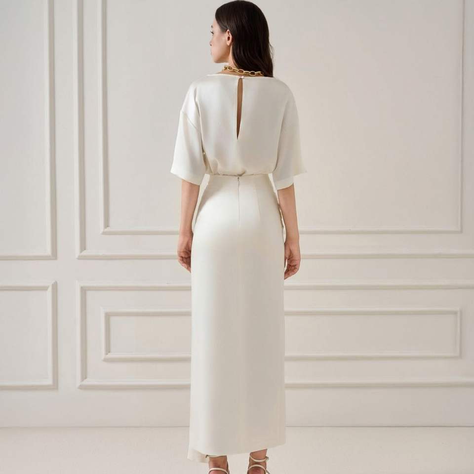 Trendy Clothing Women's Formal Skirts LIIA SILK-BLEND MIDI WRAP SKIRT Mison Satin Twist-Front Trendy Women's Clothing