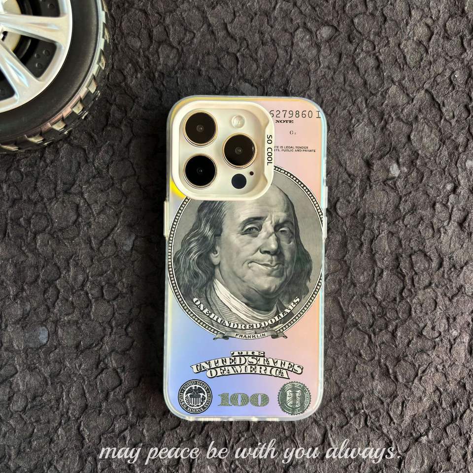 Trendy Colorful Silver IMD US Dollar Pattern Cell Phone Case for iPhone 16 Pro Max 15 Plus 14 13 Stylish Custom Phone Case