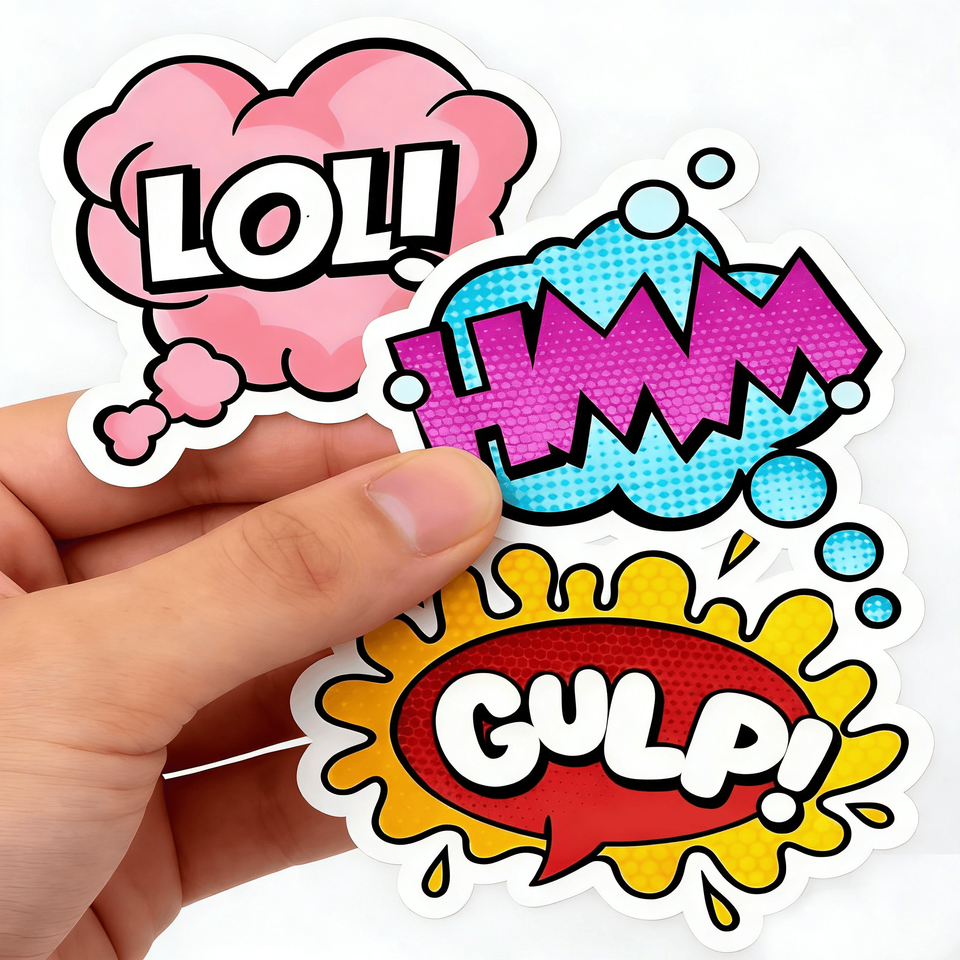 Autocollant vinyle tendance à effets sonores de bande dessinée, imperméable, personnalisé, à gratter, adhésif réutilisable pour ordinateur portable et fonction de rappel