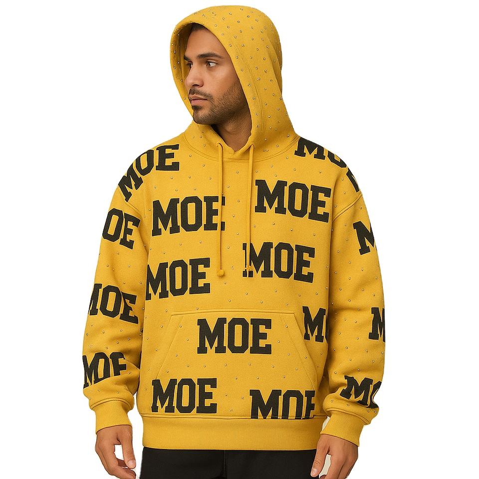 Sweats à capuche tendance personnalisés avec impression intégrale pour hommes, en molleton jaune chaud, surdimensionné, streetwear, pull, design de texte MOE, fournisseur OEM, États-Unis