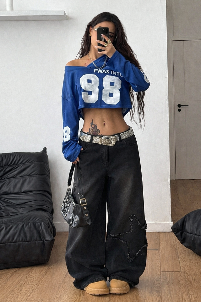 Maillot de football américain tendance personnalisé rose scintillant avec strass, t-shirts à col en V avec graphique en strass et numéro personnalisé