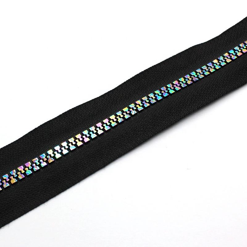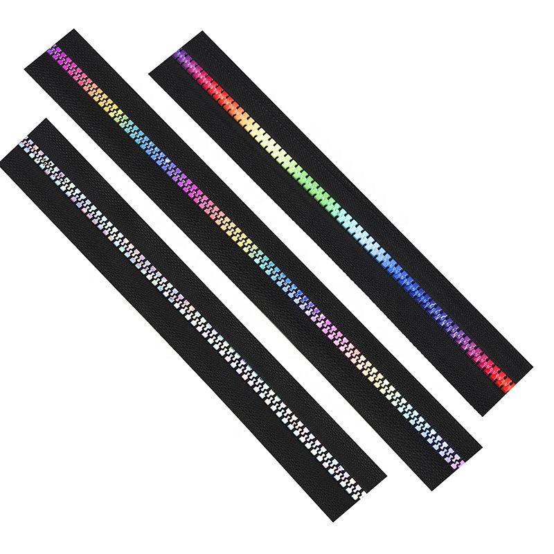 À la mode personnalisé arc-en-ciel dents résine fermeture éclair irisé réfléchissant Nylon fermeture éclair pour vêtements sacs fournitures