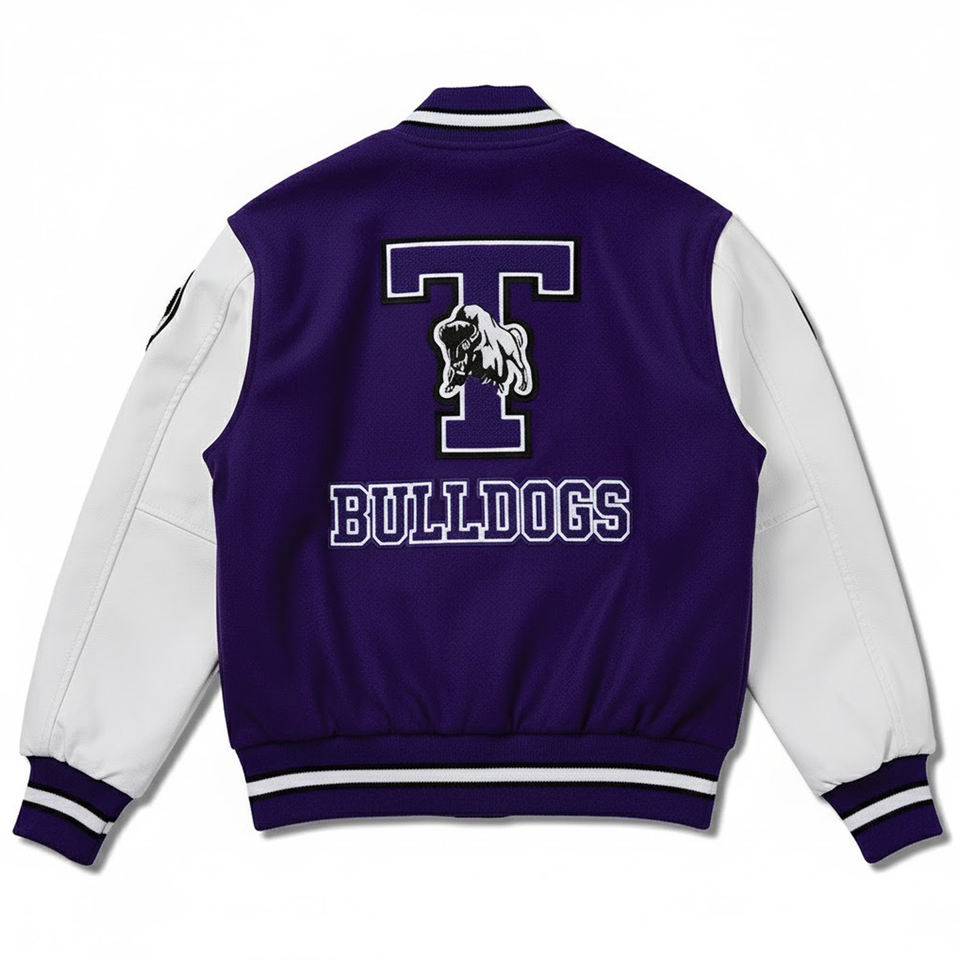 Veste universitaire tendance personnalisée avec des patchs audacieux et un design en cuir et laine de qualité supérieure, parfaite pour un style streetwear élégant, unisexe.