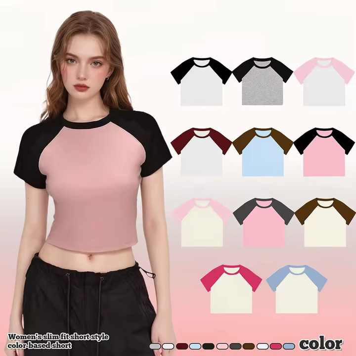 T-shirts courts pour femmes à manches raglan avec logo personnalisable à la mode