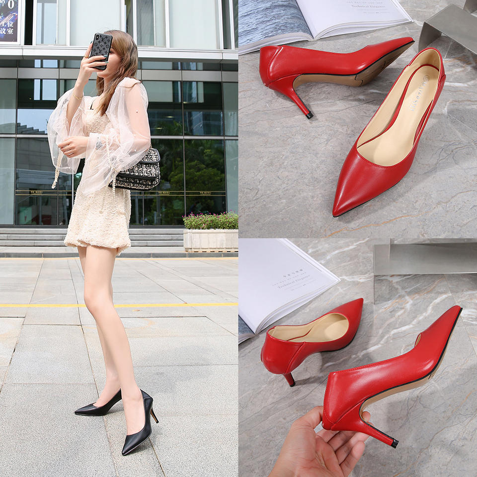 Escarpins à enfiler quotidiens à talons hauts de 7 CM pour femmes, chaussures de bureau en cuir de grande taille pour dames, vente en gros