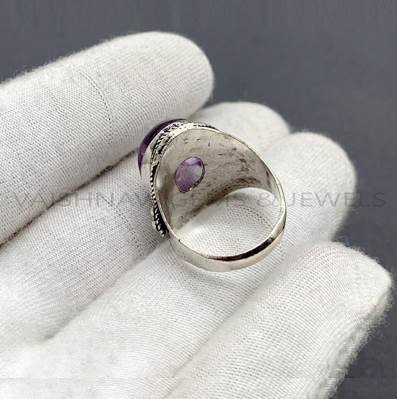 Design à la mode 10x14mm forme ovale bague en améthyste naturelle en argent Sterling 925 fait à la main bohème pierre précieuse beau cadeau bijoux pour elle