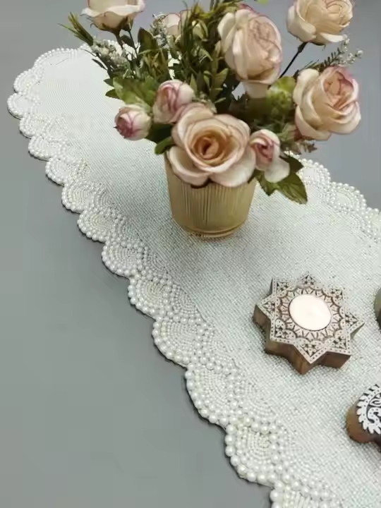 Napperon de couleur blanche brodé de coureur perlé de conception à la mode pour la maison et la vaisselle pour la décoration de fête et de mariage de Table à manger
