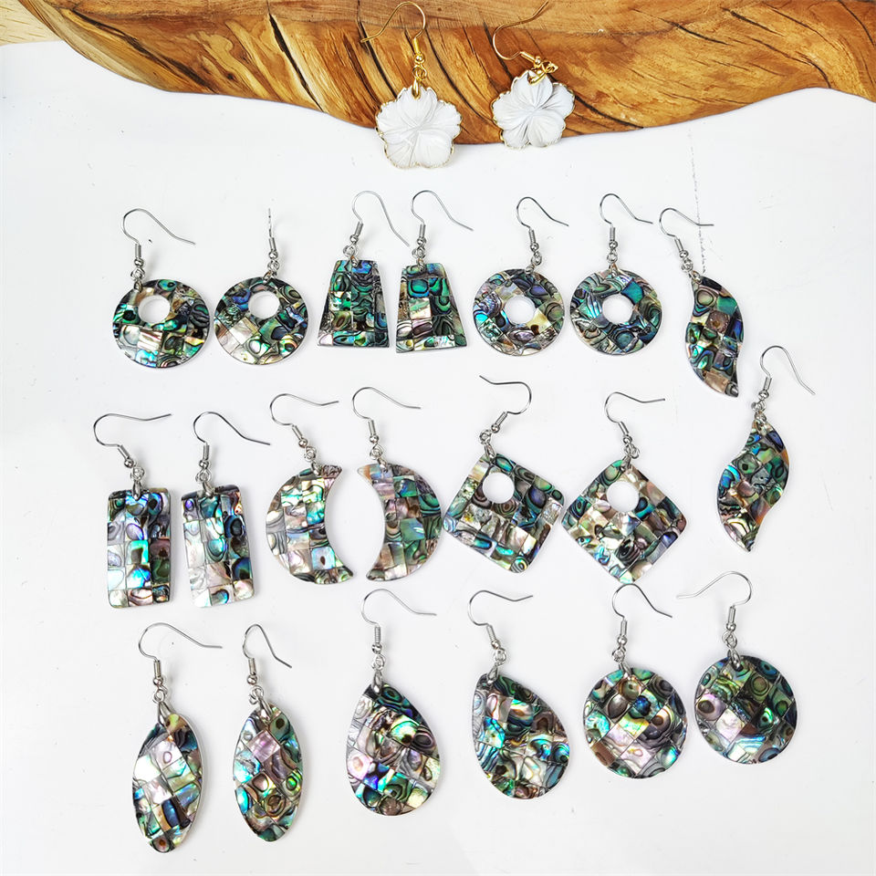 Design à la mode Style bohème coquille naturelle bijoux coquille d'ormeau mosaïque boucles d'oreilles Rectangle Marquise en forme Paua boucles d'oreilles femmes