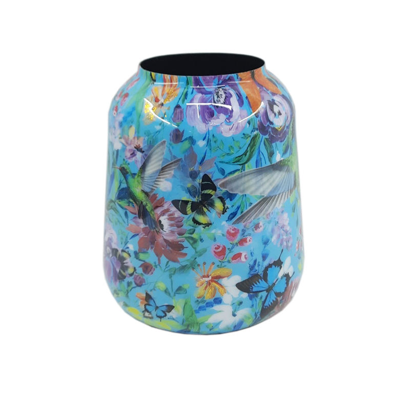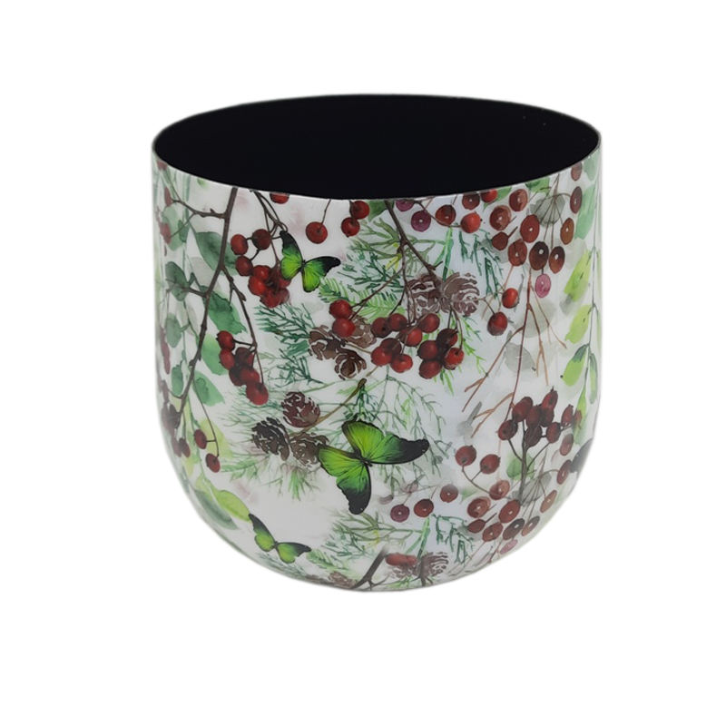 Design à la mode fait à la main fer ovale fleur planteur décalcomanie émail fini pour la maison et le jardin décoration sol utilisation personnalisée