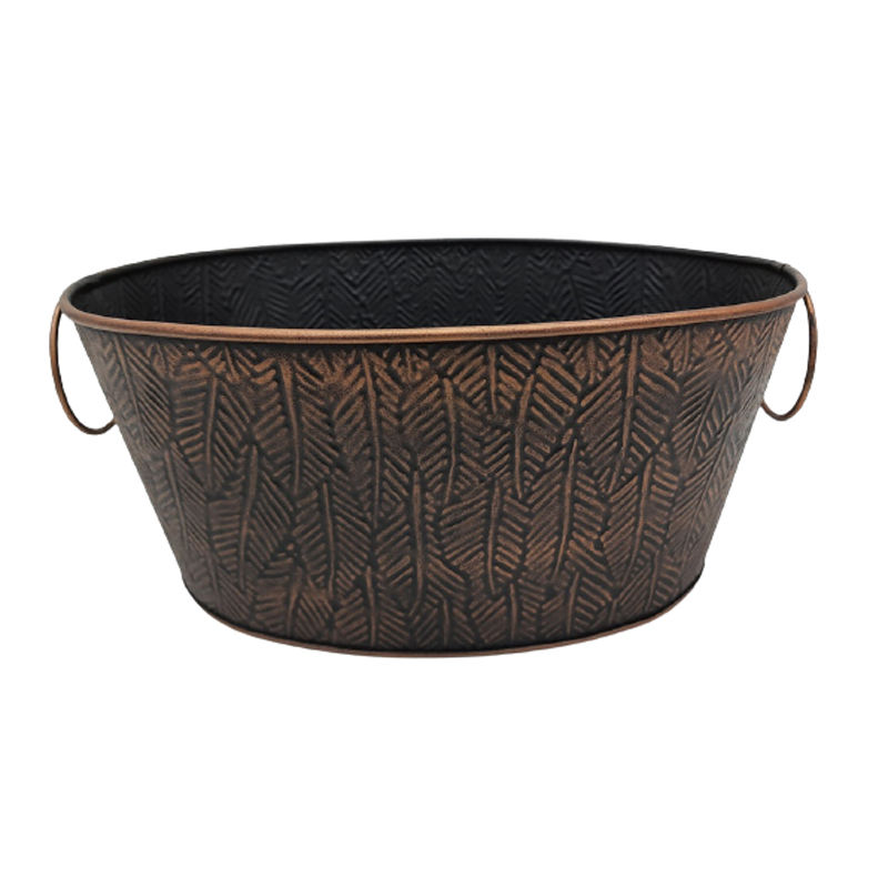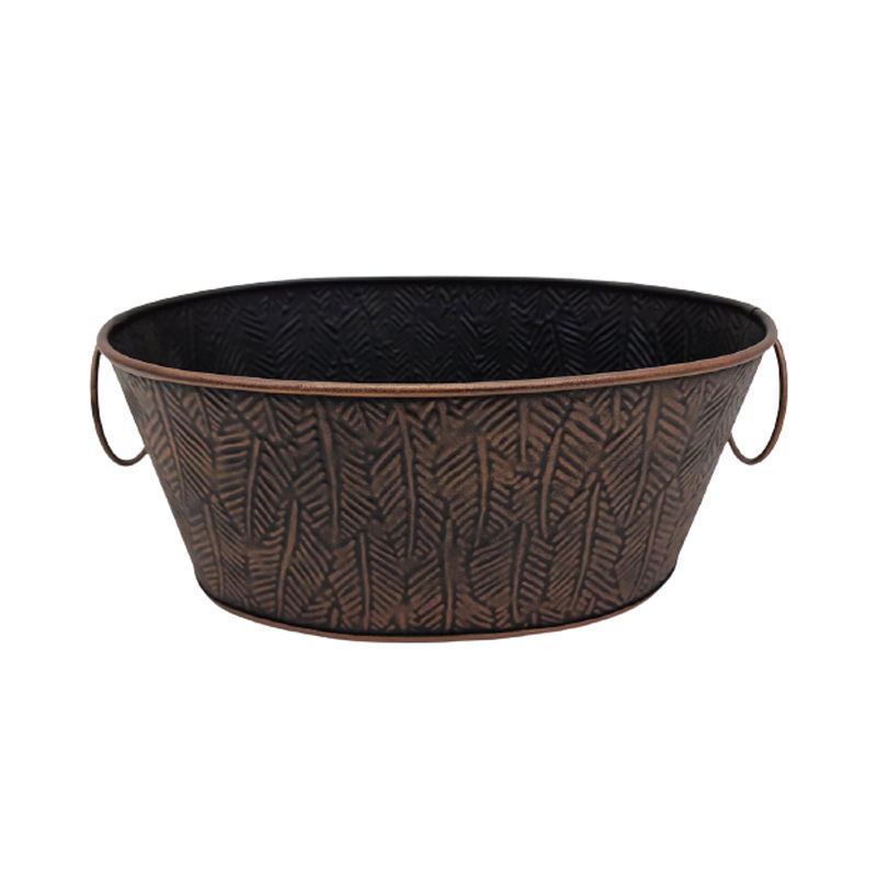 Jardinière ovale en métal de fer de conception à la mode avec la couleur unique de texture en bronze d'utilisation d'aspect antique de poignée pour l'intérieur et l'extérieur en vrac