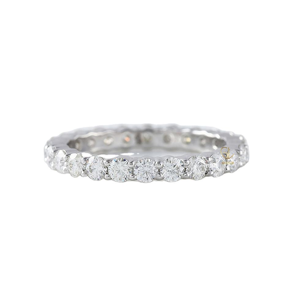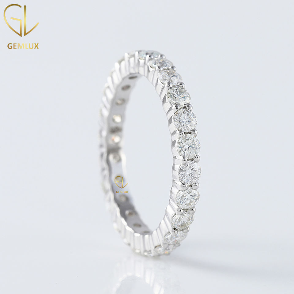 Bague d'éternité en diamant Moissanite à coupe ronde au design tendance, bague empilable, bague d'éternité complète en or blanc 14 carats pour femme