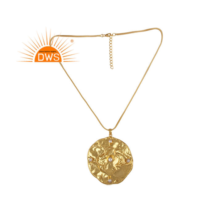 Collier pendentif en argent sterling plaqué or, design tendance, best-seller, avec perles et pierres précieuses, vente en gros