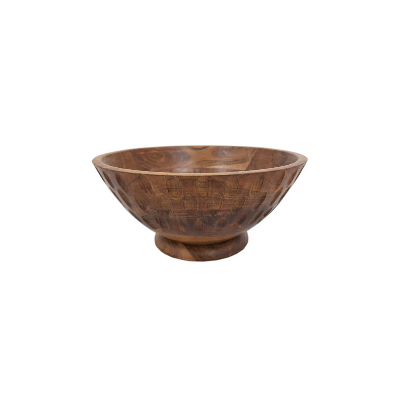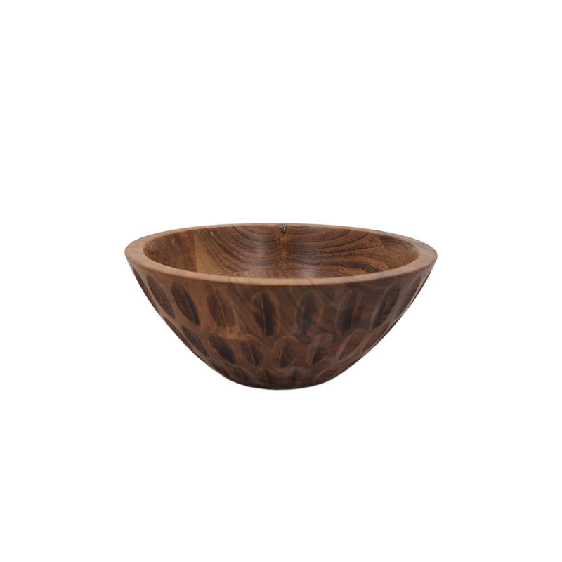 Bol de service de nourriture de forme ronde en bois de conception à la mode fini naturel pour la maison et les hôtels bols de service de nourriture de table faits à la main