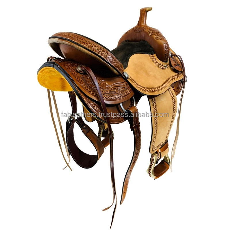 Selle de cheval western en cuir véritable fabriquée à la main par un designer à la mode, idéale pour l'équitation, la course et le roping en gros