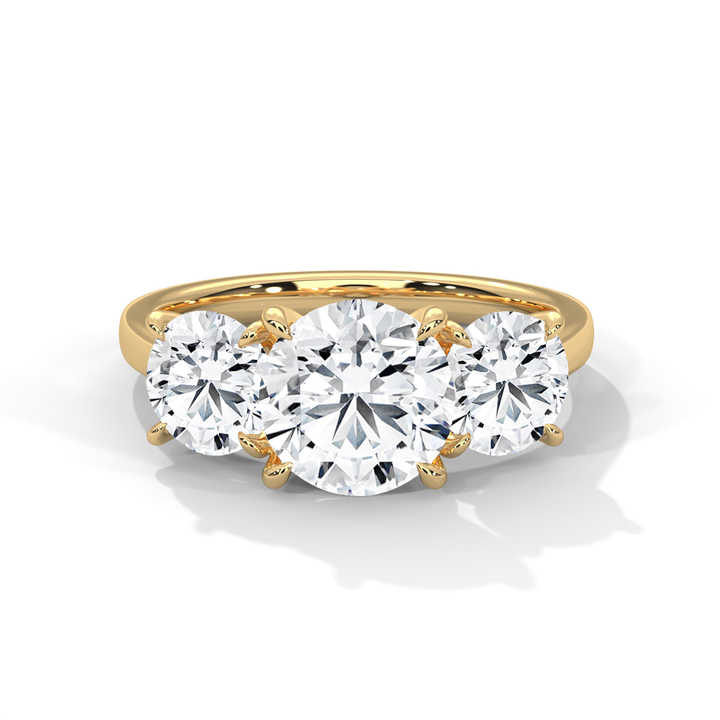 Bague de promesse tendance en or jaune massif 14 carats avec trois diamants de laboratoire sertis à griffes – Prix de gros