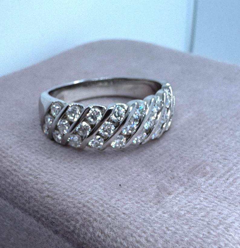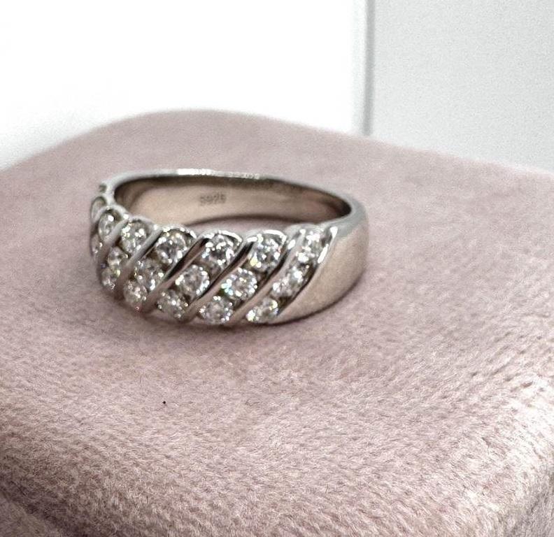 Bague de fiançailles tendance pour femme en argent sterling 925, sertie de moissanite taille brillant à canaux diagonaux, multi-rangs ondulés