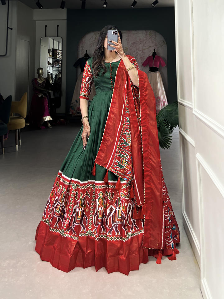 Dupatta Work:Patola Print with Gotta Patti Lace Border also comes with tassels