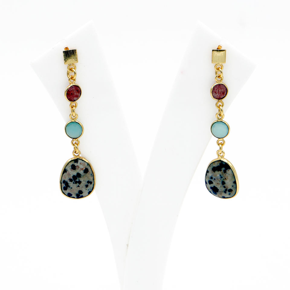 STRAWBERRY QUARTZ, BLUE CHALCEDONY, DALMATIAN JASPERMain Stone