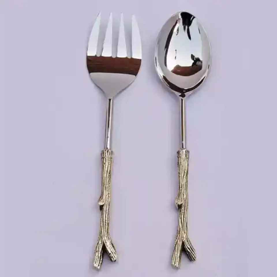 Ensemble de serveurs à salade tendance et écologiques, manche en résine orange, acier inoxydable couleur or, passe au lave-vaisselle, pour mariage et fête - Z F