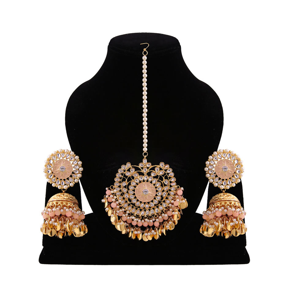 Nom du produit:Ensemble de bijoux Kundan : Boucles d'oreilles et coiffe