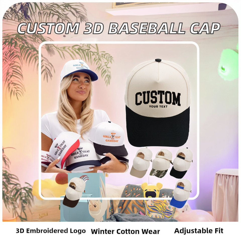 Casquette de baseball unisexe tendance, prix d'usine, entièrement personnalisable, 5 panneaux, broderie 3D, 100% coton, modèle standard