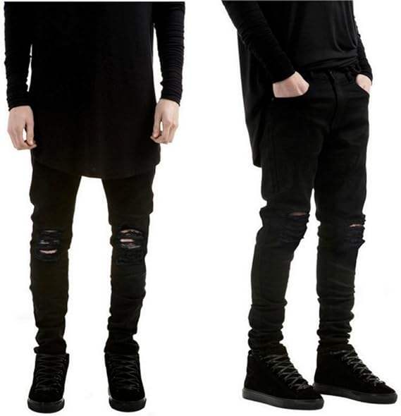 Jeans skinny déchirés tendance en denim noir pour hommes, pantalon en denim de haute qualité, style personnalisé pour hommes