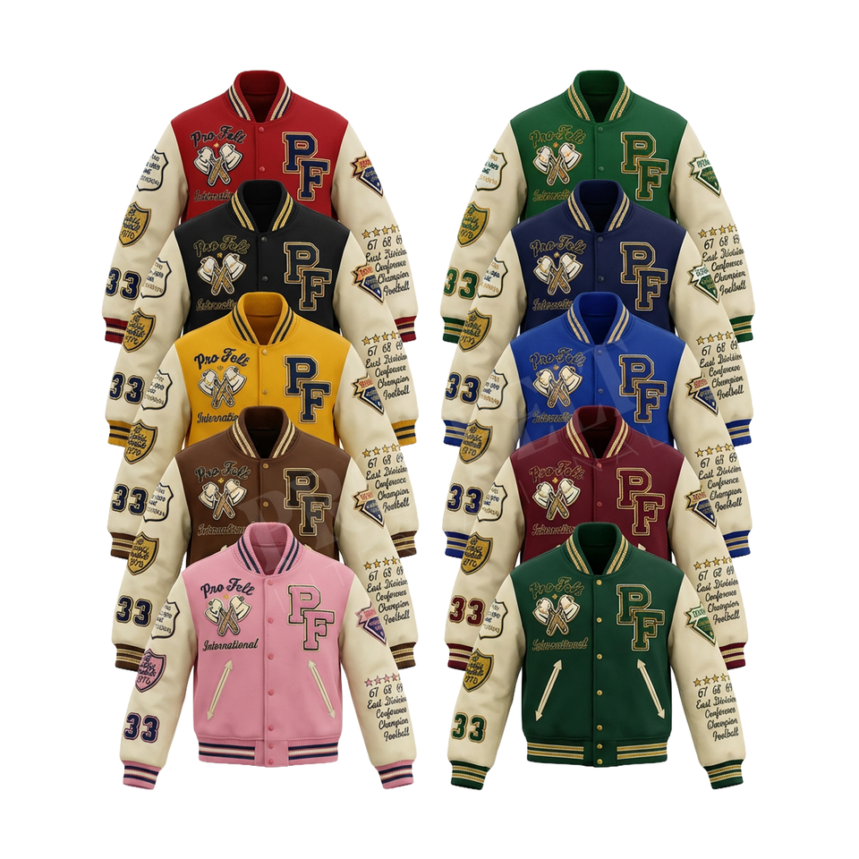 Veste de baseball universitaire tendance et élégante, corps en laine, manches en cuir PU, patchs brodés, veste de baseball universitaire pour hommes