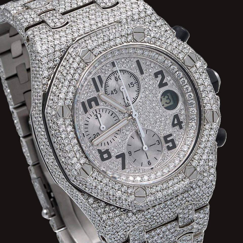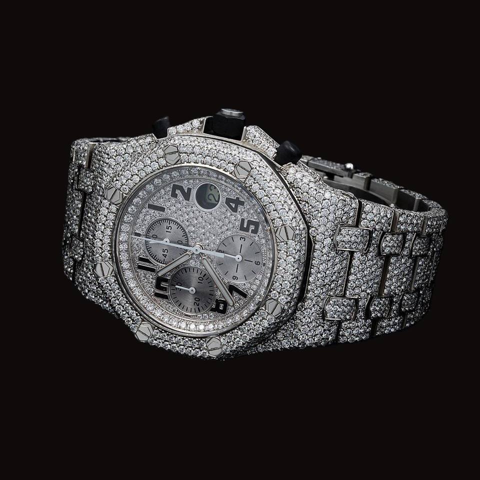 Montre-bracelet tendance en acier inoxydable entièrement sertie de moissanite taille ronde, collection premium Hip Hop, bijoux pour homme