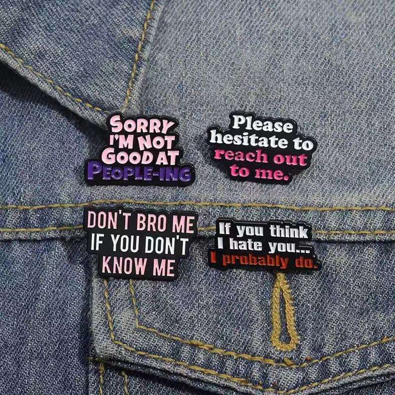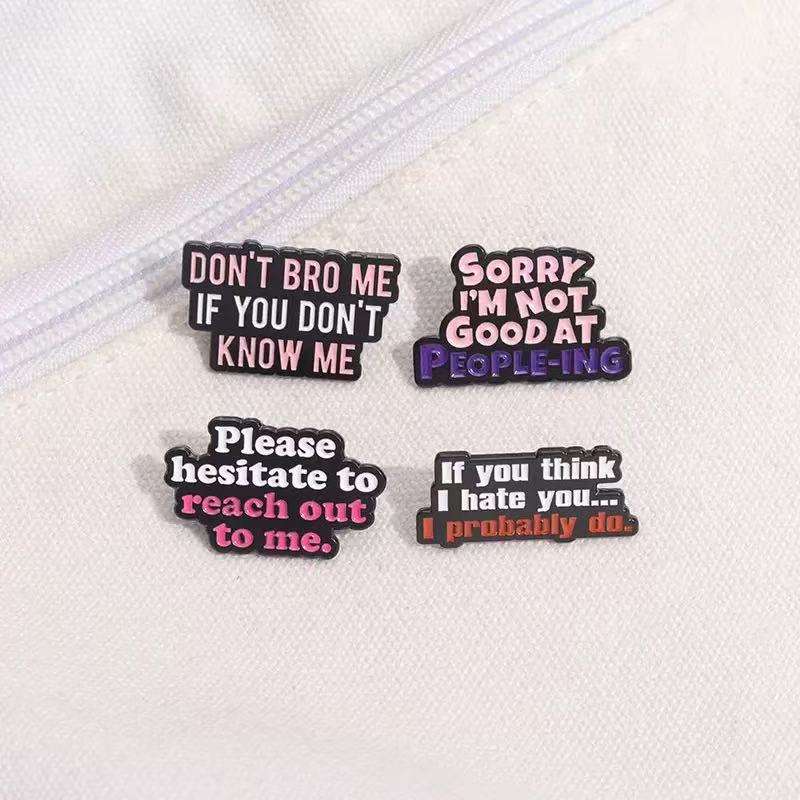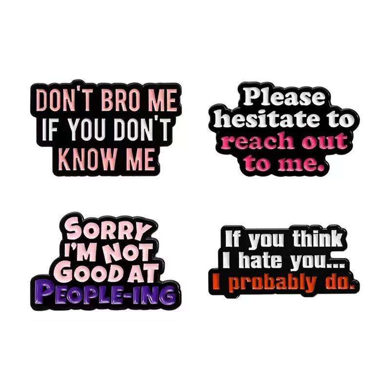 Broche en alliage géométrique à la mode Motivation Phrase anglaise Broche en métal coulé pour Noël Fête nationale Halloween Graduation Fairy