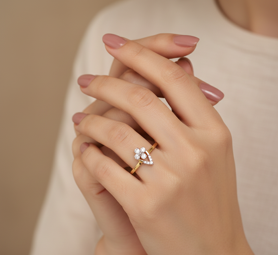 Bague tendance en or avec fleur en diamant en forme de V pour femme, cadeau d'anniversaire