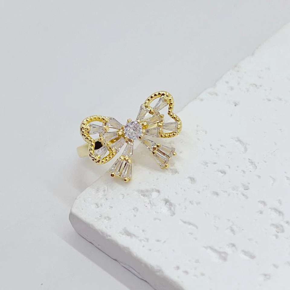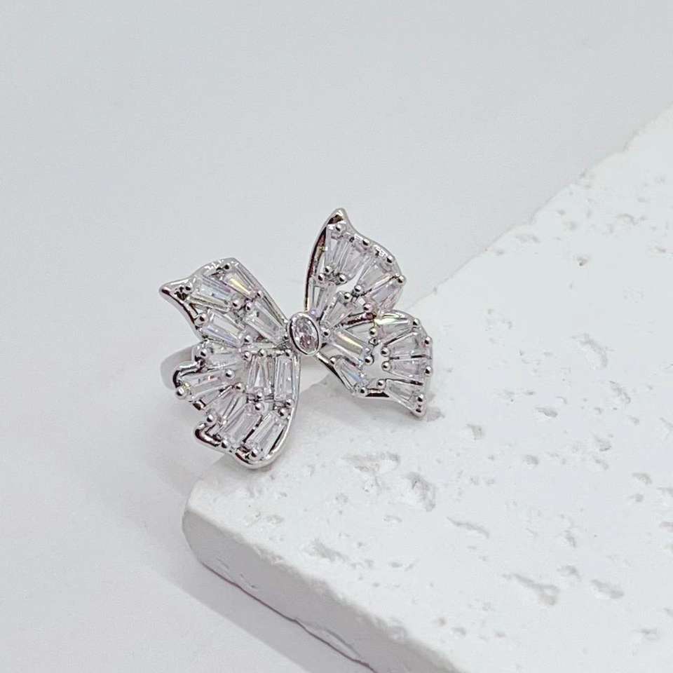 À la mode plaqué or cubique zircone papillon fleur marguerite double anneaux empilables pour femmes fille délicate bague réglable
