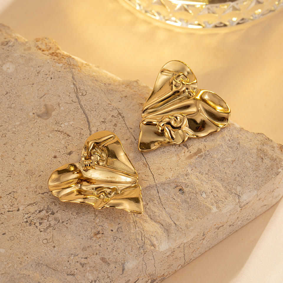 Boucles d'oreilles carrées en acier inoxydable plaqué or à la mode Les goujons irréguliers Bump Lava ne se décolorent pas